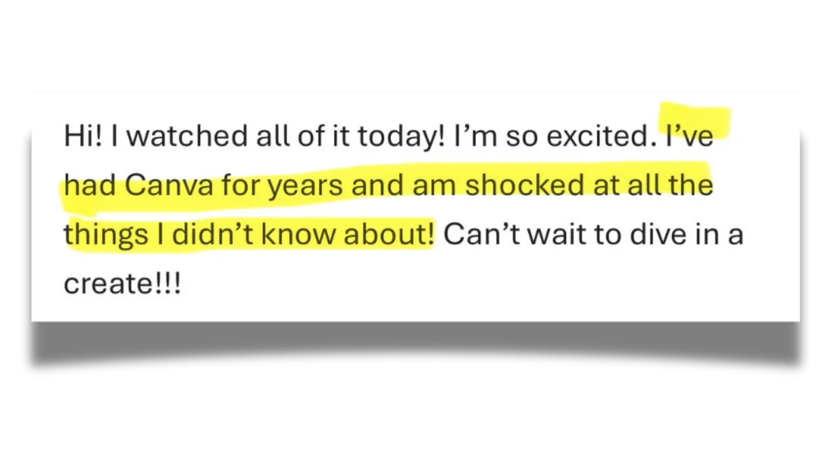 Nope! Most Canva courses teach you everything Canva can do which is why people still feel stuck when they open it.